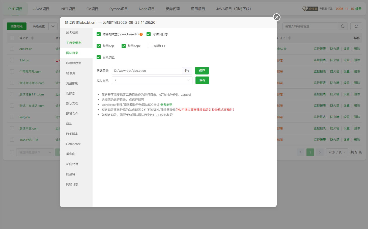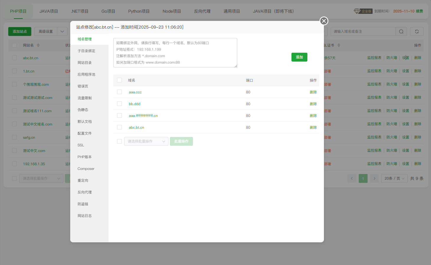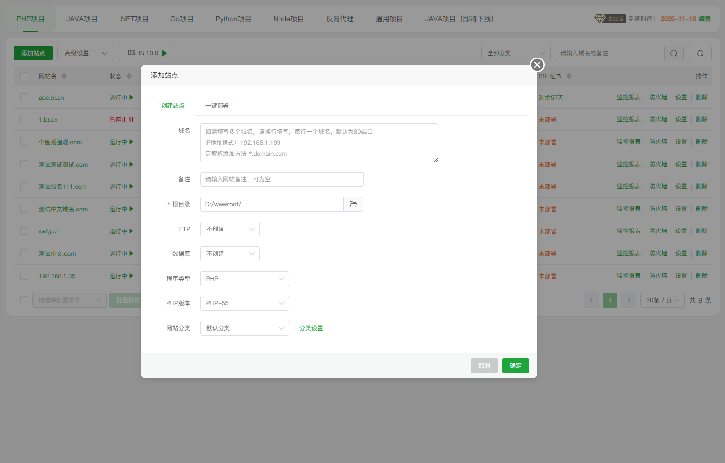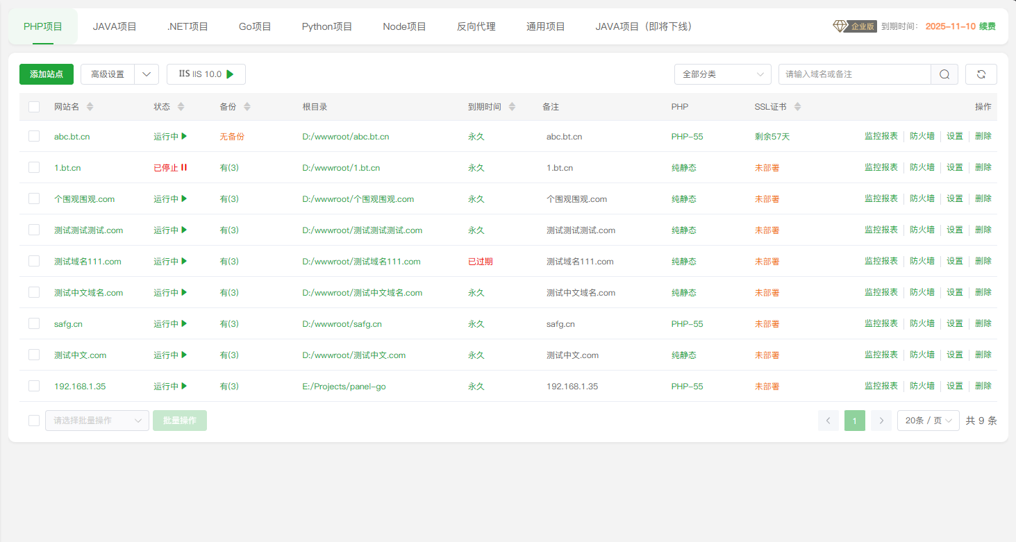 支持一键管理IIS/Nginx/Apache/MySQL/MSSQL/JAVA/Node/Python/.Net等100多项服务器管理功能。